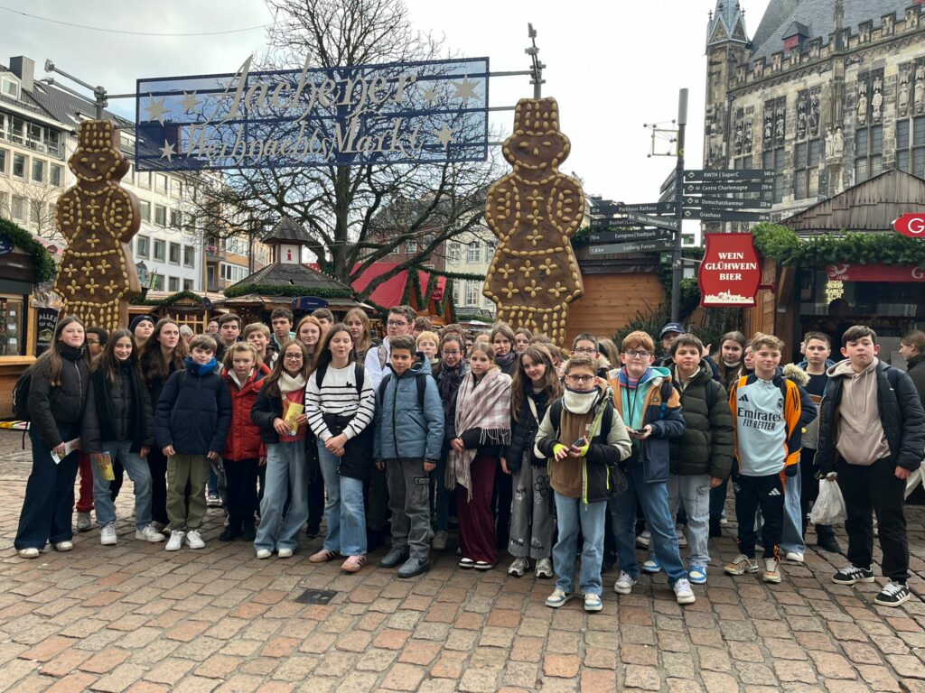 Vendredi 12 décembre : Journée à Aix-la-Chapelle destinée aux élèves germanistes de 6ᵉ et 5ᵉ : promenade sur le marché de Noël et visite guidée de la ville. Cette sortie a été partagée avec les élèves d’allemand de Corbie et de Roye.